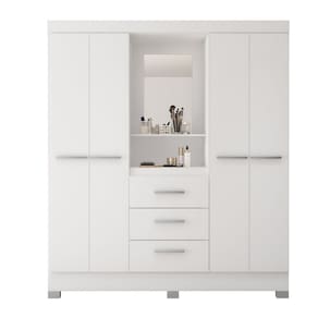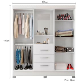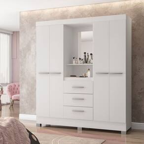 O Roupeiro Capelinha 4 portas 3 gavetas Caribe possui amplo espaço interno perfeito para ter um quarto organizado. Modelo Capelinha com espelho dando um charme ao produto. São 04 portas de bater com dobradiças reforçadas, prateleiras internas bem planejadas, 03 gavetas externas com corrediças metálicas, cabideiro e calceiro de alumínio, puxadores em polímero e pés PVC fixos. No padrão de cor branco exclusivamente, acompanha régua flex para montagem branco ou rosa. Produto em MDP Perffect Touch de maior resistência a umidade e riscos e com proteção Bacterban que inibe a proliferação de fungos e bactérias na superfície do móvel e portas em MDP com pintura UV acetinada no off White, fosca no freijó e UV no branco/flex rosa. Produto ecologicamente correto com embalagens preparadas para evitar avarias e permitir que o produto chegue em perfeito estado em sua casa. Perfeita combinação com os mais variados ambientes. Qualidade que só a Poliman oferece em seus produtos.