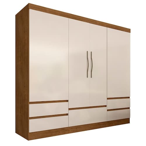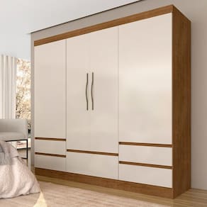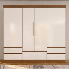 Detalhes Técnicos - MDP 12mm e 15mm - Acabamento em UV Texturizada e UV Alto Brilho - Medidas: A: 217cm x L: 198cm x P: 47,5cm - Tonalidade: Freijó/Off Premium - Puxadores Passantes e 2 em Polietileno - Cabideiro em Alumínio - Gavetas com Corrediças Metálicas - Prateleiras e Gavetas suportam até 5kg distribuídos