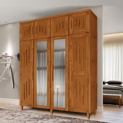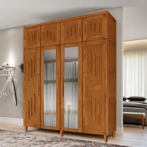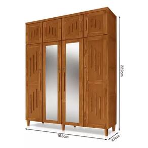 Com sua estrutura toda em madeira de reflorestamento, suas portas e laterais possuem o requadro em madeira, com o centro de fechamento(almofada) em MDF. Peças internas como prateleira, fundo e laterais de gavetas, bases e fechamento do fundo também são em MDF e MDP. Acabamento interno com partes em verniz nitro e outras em cera premium de acabamento.
