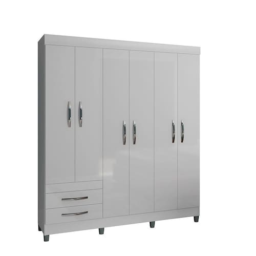 O Roupeiro Casal 6 portas 2 gavetas Recife da Poliman Moveis apresenta amplo espaco interno, oferecendo praticidade e funcionalidade ao seu dia a dia. O padrao de tonalidade acompanha vistas FLEX que podem ser montadas combinando com os mais variados ambientes. Composto por 06 portas de bater, 02 espacosas gavetas com corredicas metalicas e puxadores em polimero prata cromado, prateleiras internas e cabideiro metalico, os pes estao inclusos na caixa para uso opcional. Pintura UV alto brilho nas cores unicas e texturizado nas versoes amadeiradas movel disponivel em variados padroes de tonalidade. Produto em MDP, ecologicamente correto, pois utiliza madeira de reflorestamentos, controle de poluentes e descarte rigoroso de residuos durante o processo produtivo. As embalagens sao feitas para que o produto chegue a perfeito estado em sua residencia, utilizando isomanta para protecao das pecas que sao embaladas em caixa de papelao revestida por plastico termoencolhivel. Produto com toda qualidade que so a Poliman oferece.