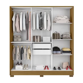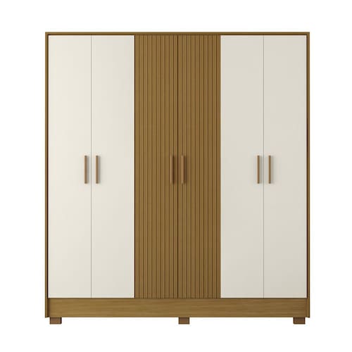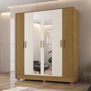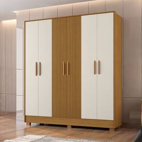 O Roupeiro 6 portas Londres possui amplo espaço interno perfeito para ter um quarto organizado. São 06 portas de bater com dobradiças reforçadas sendo duas portas modelo ripado gráfico deixando o produto elegante, pode ser utilizado com espelho -vendido separadamente-, prateleiras internas bem planejadas, 02 gavetas com corrediças metálicas, cabideiro e calceiro em alumínio, puxadores em MDF dando um charme a peça e pés PVC fixos. Produto em MDP Perffect Touch de maior resistência a umidade e riscos e com proteção Bacterban que inibe a proliferação de fungos e bactérias na superfície do móvel e portas em MDP com pintura UV acetinada no off white e fosca no freijó. Produto ecologicamente correto com embalagens preparadas para evitar avarias e permitir que o produto chegue em perfeito estado em sua casa. Perfeita combinação com os mais variados ambientes. Qualidade que só a Poliman oferece em seus produtos.