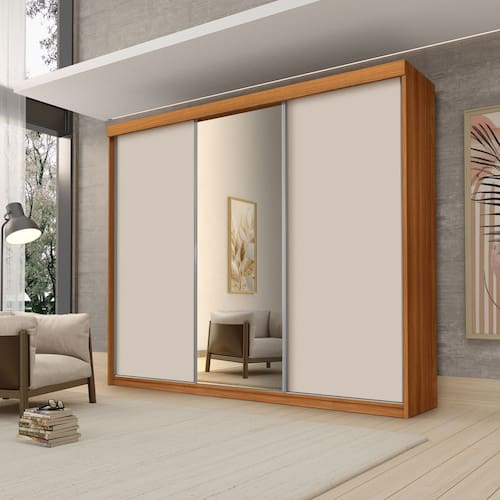 - Desenvolvido em 100% MDF de 15mm- Acabamento em UV- Possui 3 portas de correr- Possui 5 gavetas- Possui 9 prateleiras- Cabideiro em alumínio- Corrediças telescópicas- Trilho superior e inferior em alumínio- Roldanas das portas reforçadas - Espaços para vestidos longos- Puxadores perfil de alumínio- Acompanha espelho- Design moderno