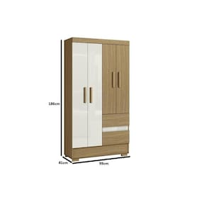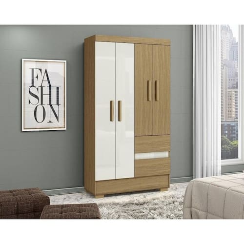 Guarda Roupa de 04 portas e 02 gavetas. Produzido em MDP de 12mm e 15mm de espessura, proporcionando resistência e durabilidade. Amplo espaço interno, garantindo maior firmeza ao móvel. Puxadores de MDF 25mm dando maior resistência. Cabideiro em madeira revestido em PVC Cinza, garantindo a sustentação das roupas sem quebrar com facilidade e sem envergar com o tempo de uso. Dobradiças metálicas dando maior durabilidade e resistência ao abrir e fechar as portas, corrediças das gavetas em metal, oferecendo durabilidade e um melhor deslize ao abrir e fechar as gavetas. Acabamento em verniz texturizado fosco, garantindo a conservação do móvel, além de manter a beleza constante oferece ao móvel, resistência e durabilidade prolongando a vida útil do produto. Pés plásticos.