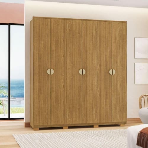 Feito em MDF, possui 6 portas, 4 gavetas e 2 cabideiros.