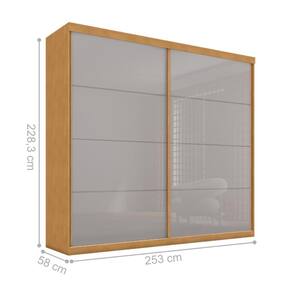 Feito em MDF 15mm.Possui 4 gavetas com corrediças telescópicas, 2 Portas deslizantes, 6 prateleiras e 4 cabideiro.