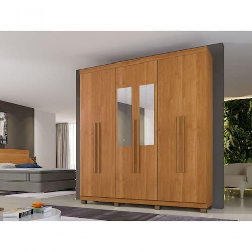 ROUPEIRO MILÃO É PRODUZIDO EM CHAPA DE 15 MM QUE GARANTE ROBUSTES E MAIOR VIDA ÚTIL , CONTEM 6 PORTAS, 7 PRATELEIRAS, 3 GAVETAS COM CORREDIÇAS TELESCOPICA, CABIDEIRO EM ALUMINIO, PES INCLUSO NO PRODUTO E PUXADORES NA COR , ÓTIMO CUSTO BENEFICIO.