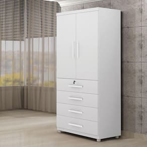 O Roupeiro New Maia da Benetil é compacto e prático. Possui bom espaço interno, possibilitando armazenar seus objetos de forma mais organizada. Conta com quatro gavetas, uma dela com chave, oferecendo mais segurança. As gavetas são em corrediças telescópicas, o que garante uma maior abertura. As portas de bater dão a ele um ar tradicional, mas com elementos que valorizam cada detalhe. O cabideiro é em alumínio o que dá mais segurança e resistência. Ele é compacto. Excelentes para quartos menores.Informações técnicas: