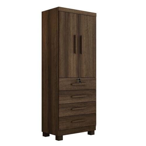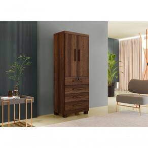 Roupeiro Conjugado 2 Portas 4 Gavetas New Maia Benetil Imbuia O Roupeiro New Maia da Benetil é compacto e prático. Possui bom espaço interno, possibilitando armazenar seus objetos de forma mais organizada. Conta com quatro gavetas, uma dela com chave, oferecendo mais segurança. As gavetas são em corrediças telescópicas, o que garante uma maior abertura. As portas de bater dão a ele um ar tradicional, mas com elementos que valorizam cada detalhe. O cabideiro é em alumínio o que dá mais segurança e resistência. Ele é compacto. Excelentes para quartos menores.Informações técnicas: Linha: Roupeiro Maia Marca: Benetil Móveis Estilo: Moderno Origem do produto: Nacional Matéria-prima da estrutura: MDP Ambiente principal: Quarto / Outros Tipo de pintura: Fosco Cor: Branco De canto: Não Necessita montagem: Sim Possui espelho interno: Não Possui espelho externo: Não Possui pés: Sim Quantidade de pés: 4 Altura dos pés: 5cm Material dos pés: PVC Possui portas: Sim Quantidade de portas: 2 Tipo de portas: Bater Matéria-prima da porta: MDP Tipo de puxador da porta: Externo Matéria-prima dos puxadores: Madeirado Possui prateleiras: Não Possui gavetas: Sim Quantidade de gavetas: 4 Tipo de gaveta: Externa Tipo de corrediça da gaveta: Telescópica Possui cabideiro: Sim Quantidade de cabideiro: 1 Matéria-prima do cabideiro: Alumínio Dimensões do Produto: Altura: 191 cm Largura: 76 cm Profundidade: 45 cm Peso: 50kg