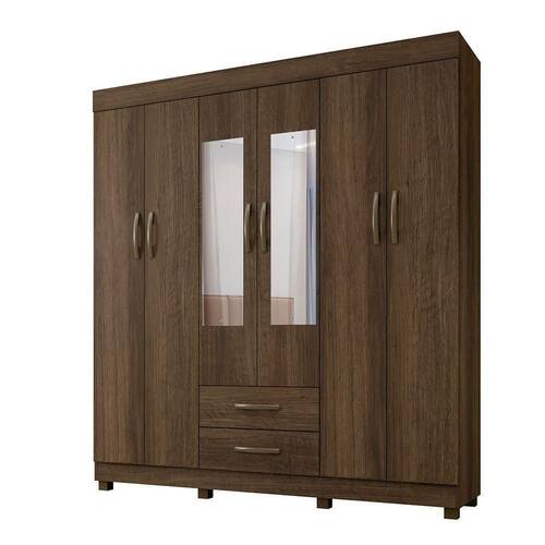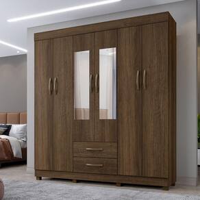 O Roupeiro Com Espelho Copacabana 6 Portas Possui 04 Prateleiras, 02 Cabideiros Em Aluminio, 02 Gavetas Com Corredicas Telescopicas E Puxadores Em Pvc. Proporcionando Beleza E Organizacao Para Seu Quarto.