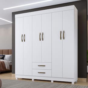Roupeiro Copacabana Branco 6 Portas Sem Espelho Benetil Móveis Branco O Roupeiro Sem Espelho Copacabana 6 Portas Possui 04 Prateleiras, 02 Cabideiros Em Aluminio, 02 Gavetas Com Corredicas Telescopicas E Puxadores Em Pvc. Proporcionando Beleza E Organizacao Para Seu Quarto. Caracteristicas: Cor: Branco Acabamento: Pintura UV Possui Pe: 08 Possui Portas: 06 Possui Gavetas:02 Tipo Porta: Bater Necessita Montagem: Sim Complexidade Montagem: Media Indicacao De Uso: Quarto