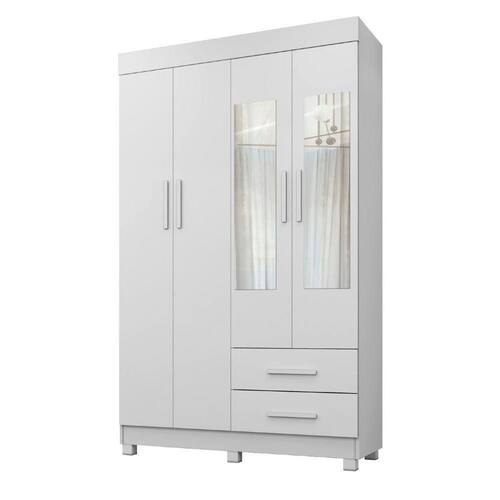 ROUPEIRO COPACABANA É PRODUZIDO EM CHAPA DE 15 MM QUE GARANTE ROBUSTES E MAIOR VIDA ÚTIL , CONTEM 4 PORTAS, 4 PRATELEIRAS, 2 GAVETAS COM CORREDIÇAS TELESCOPICA, CABIDEIRO EM ALUMINIO,ESPAÇO PARA LONGOS, PES INCLUSO NO PRODUTO E PUXADORES MODERNOS , CONTÉM ESPELHO E UM ÓTIMO CUSTO BENEFICIO.