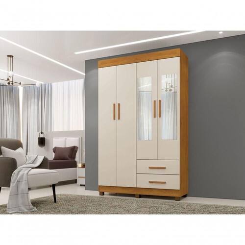 ROUPEIRO COPACABANA É PRODUZIDO EM CHAPA DE 15 MM QUE GARANTE ROBUSTES E MAIOR VIDA ÚTIL , CONTEM 4 PORTAS, 4 PRATELEIRAS, 2 GAVETAS COM CORREDIÇAS TELESCOPICA, CABIDEIRO EM ALUMINIO,ESPAÇO PARA LONGOS, PES INCLUSO NO PRODUTO E PUXADORES MODERNOS , CONTÉM ESPELHO E UM ÓTIMO CUSTO BENEFICIO.