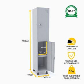 Roupeiro De Aço 1M 02 Portas C/ Prat. Fechadura Pandin - Cinza - Cinza Claro