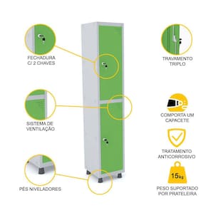 À procura de um móvel seguro com vãos individuais para armazenar objetos dos colaboradores, clientes ou pacientes de seu estabelecimento? Este roupeiro de aço da Pandin nas cores cinza e verde tem duas portas com bastante espaço para que os usuários tenham toda a comodidade de que precisam no dia a dia. Cada porta conta com fechaduras que vêm com chaves individuais e travamento triplo para maior segurança. Versátil e modular, este roupeiro de aço vem em várias opções de cores e tamanhos, sendo ideal para indústrias, recepções, lojas, academias, laboratórios, condomínios, clínicas e todo tipo de empresa que necessita seguir normas de segurança e higiene ou apenas precisa de um espaço de arrumação diária. Esta é uma peça com a qualidade garantida da Pandin, que oferece móveis resistentes, duráveis e seguros, ideais para quem precisa organizar o dia a dia com segurança e praticidade. A Pandin também oferece arquivos, armários e estantes de aço para que seu escritório e seu negócio contem com uma decoração prática, moderna e de excelente custo-benefício.