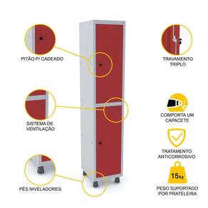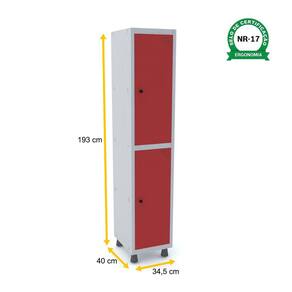 ROUPEIRO DE AÇO 1M 02 PORTAS PITÃO PANDIN - CINZA/VERMELHO