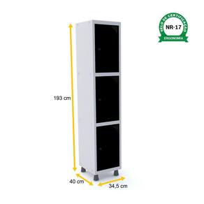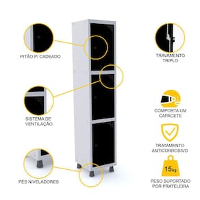 ROUPEIRO DE AÇO 1M 03 PORTAS PITÃO PANDIN - CINZA/PRETO