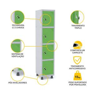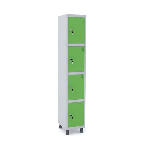 À procura de um móvel seguro para armazenar objetos dos colaboradores, clientes ou pacientes de seu estabelecimento? Este roupeiro de aço da Pandin nas cores cinza e verde tem quatro vãos com fechadura, cada um com espaço suficiente para que os usuários tenham toda a comodidade de que precisam no dia a dia. Para maior segurança, cada fechadura oferece travamento triplo e acompanha chaves individuais. Versátil e modular, este roupeiro de aço vem em várias opções de cores e tamanhos, sendo ideal para indústrias, recepções, lojas, academias, laboratórios, condomínios, clínicas e todo tipo de empresa que necessita seguir normas de segurança e higiene ou apenas precisa de um espaço de arrumação diária. Esta é uma peça com a qualidade garantida da Pandin, que oferece móveis resistentes, duráveis e seguros, ideais para quem precisa organizar o dia a dia com segurança e praticidade. A Pandin também oferece arquivos, armários e estantes de aço para que seu escritório e seu negócio contem com uma decoração prática, moderna e de excelente custo-benefício.