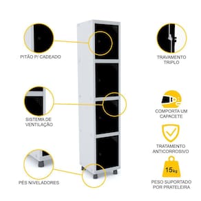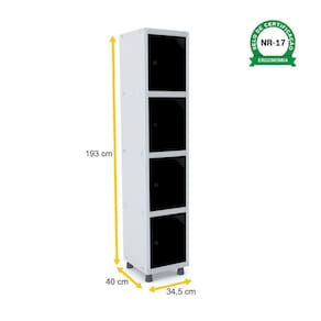 ROUPEIRO DE AÇO 1M 04 PORTAS PITÃO PANDIN - CINZA/PRETO