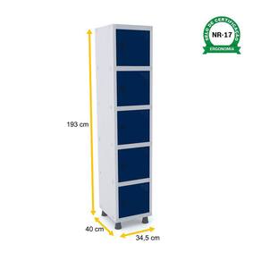 ROUPEIRO DE AÇO 1M 05 PORTAS PITÃO PANDIN - CINZA/AZUL DEL REY