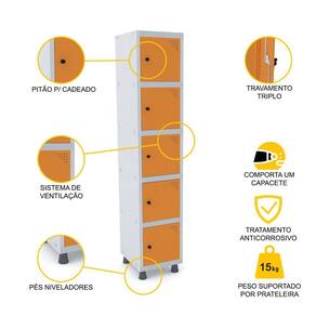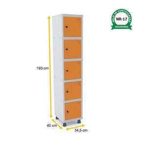 ROUPEIRO DE AÇO 1M 05 PORTAS PITÃO PANDIN - CINZA/LARANJA