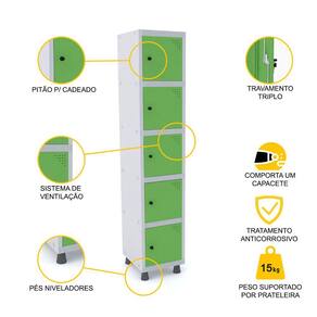 Roupeiro De Aço 1M 05 Portas Pitão Pandin - Cinza/Verde