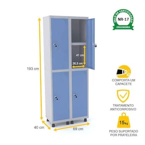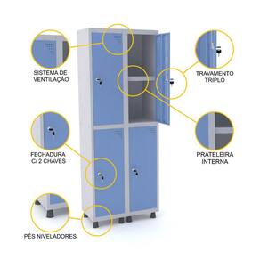ROUPEIRO DE AÇO 2M 04 PORTAS C/ PRAT. FECHADURA PANDIN - CINZA/AZUL DALÍ