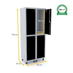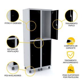 ROUPEIRO DE AÇO 2M 04 PORTAS PITÃO PANDIN - CINZA/PRETO