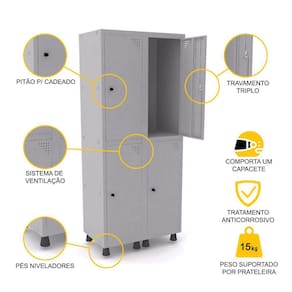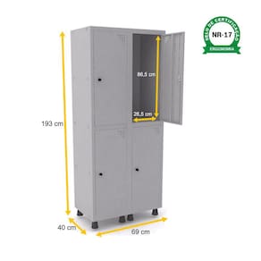 ROUPEIRO DE AÇO 2M 04 PORTAS PITÃO PANDIN - CINZA