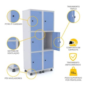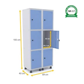 ROUPEIRO DE AÇO 2M 06 PORTAS PITÃO PANDIN - CINZA/AZUL DALÍ