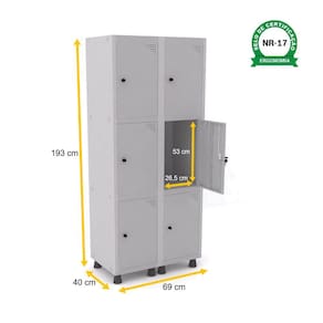 ROUPEIRO DE AÇO 2M 06 PORTAS PITÃO PANDIN - CINZA