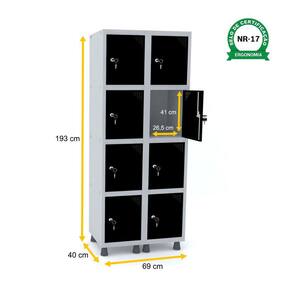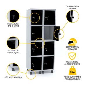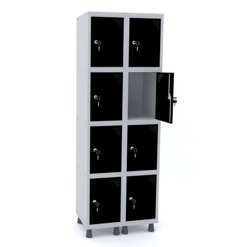 ROUPEIRO DE AÇO 2M 08 PORTAS FECHADURA PANDIN - CINZA/PRETO