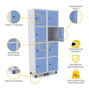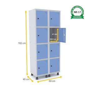 ROUPEIRO DE AÇO 2M 08 PORTAS PITÃO PANDIN - CINZA/AZUL DALÍ