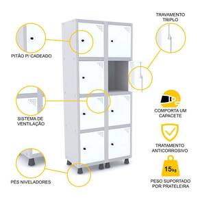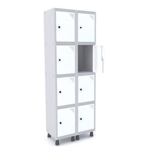 ROUPEIRO DE AÇO 2M 08 PORTAS PITÃO PANDIN - CINZA/BRANCO