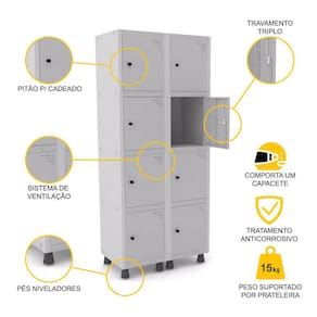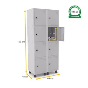ROUPEIRO DE AÇO 2M 08 PORTAS PITÃO PANDIN - CINZA