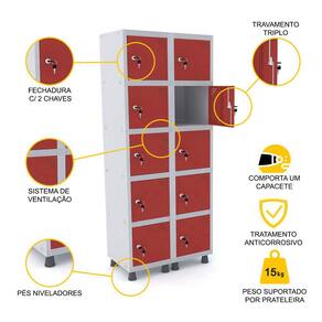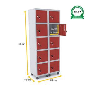 ROUPEIRO DE AÇO 2M 10 PORTAS FECHADURA PANDIN - CINZA/VERMELHO