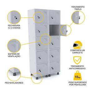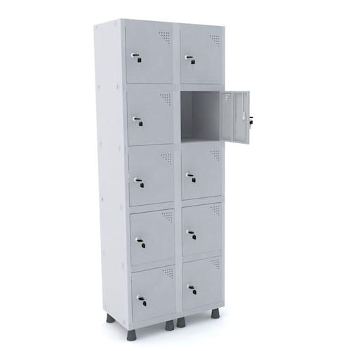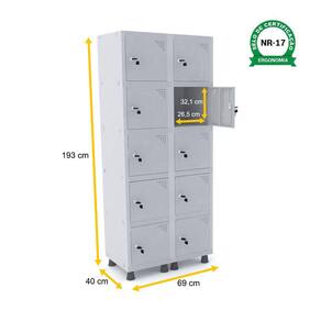 ROUPEIRO DE AÇO 2M 10 PORTAS FECHADURA PANDIN - CINZA