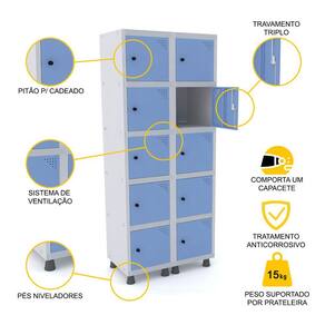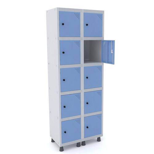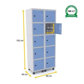 ROUPEIRO DE AÇO 2M 10 PORTAS PITÃO PANDIN - CINZA/AZUL DALÍ