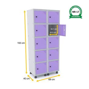 ROUPEIRO DE AÇO 2M 10 PORTAS PITÃO PANDIN - CINZA/LILÁS