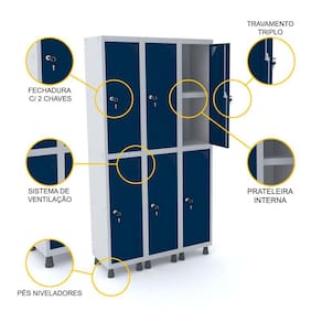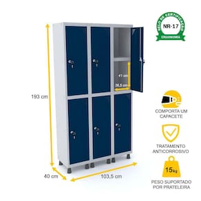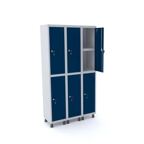 ROUPEIRO DE AÇO 3M 06 PORTAS C/ PRAT. FECHADURA PANDIN - CINZA/AZUL DEL REY