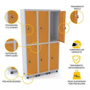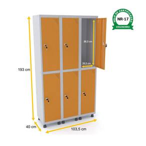 Roupeiro De Aço 3M 06 Portas Fechadura Pandin - Cinza/Laranja