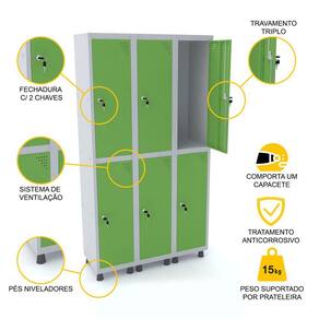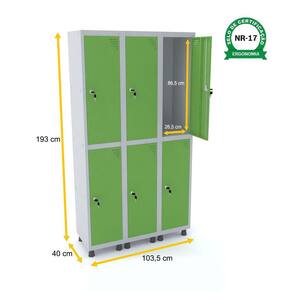 ROUPEIRO DE AÇO 3M 06 PORTAS FECHADURA PANDIN - CINZA/VERDE
