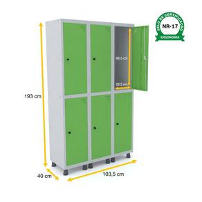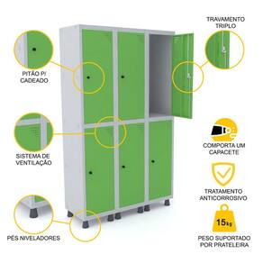 ROUPEIRO DE AÇO 3M 06 PORTAS PITÃO PANDIN - CINZA/VERDE