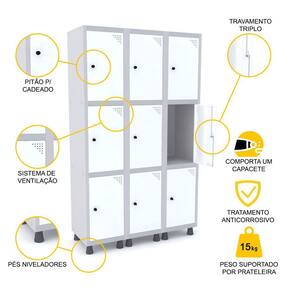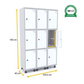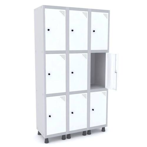 ROUPEIRO DE AÇO 3M 09 PORTAS PITÃO PANDIN - CINZA/BRANCO