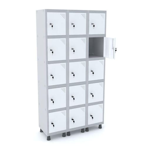 ROUPEIRO DE AÇO 3M 15 PORTAS FECHADURA PANDIN - CINZA/BRANCO