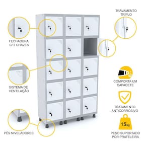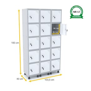 Roupeiro De Aço 3M 15 Portas Fechadura Pandin - Cinza/Branco