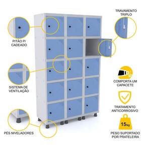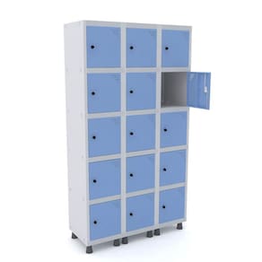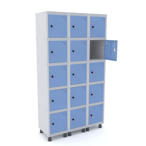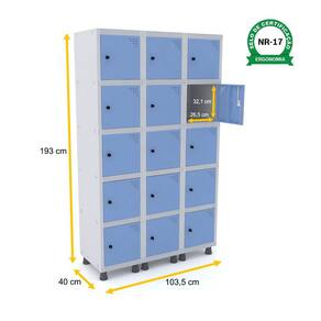 ROUPEIRO DE AÇO 3M 15 PORTAS PITÃO PANDIN - CINZA/AZUL DALÍ
