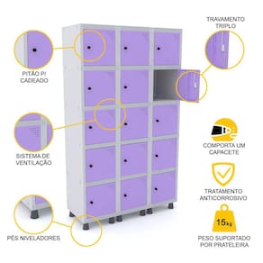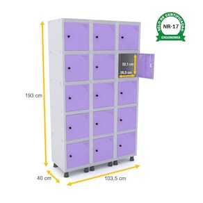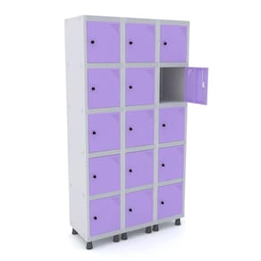 ROUPEIRO DE AÇO 3M 15 PORTAS PITÃO PANDIN - CINZA/LILÁS