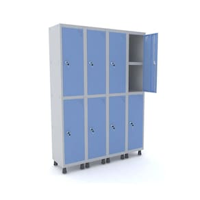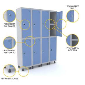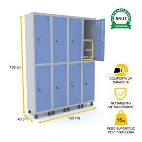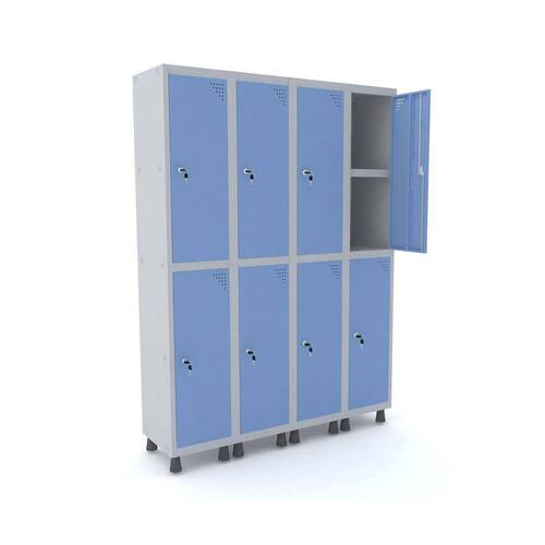ROUPEIRO DE AÇO 4M 08 PORTAS C/ PRAT. FECHADURA PANDIN - CINZA/AZUL DALÍ