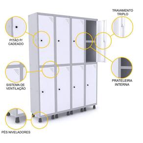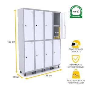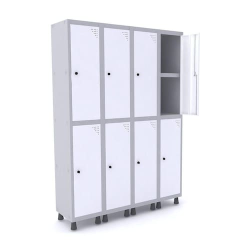 ROUPEIRO DE AÇO 4M 08 PORTAS C/ PRAT. PITÃO PANDIN - CINZA/BRANCO