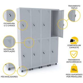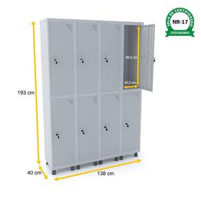 ROUPEIRO DE AÇO 4M 08 PORTAS FECHADURA PANDIN - CINZA